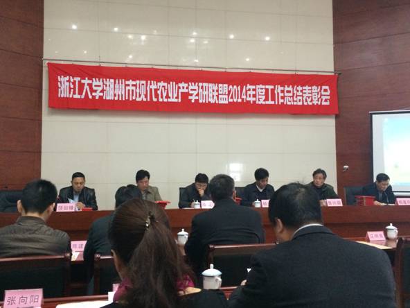 湖州市农业局局长杨建明主持会议。浙江大学湖州市南太湖现代农业科技推广中心主任徐海圣总结了联盟2014年度工作进展,汇报了2015年工作打算。2014年度,联盟按照《市校合作2014年度十项重点工作》、《农业和农村体制改革专项小组2014年工作计划》有关要求,在优化产业联盟团队建设、推进农业技术入股试点、培育农业科技创新团队、推动专家进驻乡镇农业公共服务中心、组建主导产业研发机构、开展农业专题调研、承担和实施科研项目、引进推广新品种新技术、培训基层农技人员和新型职业农民、建设十大种业基地等方面取得了丰硕成果,联盟制定了农业生产技术规范或操作规程12项,引进新品种179个,推广应用新技术(新模式)66项,申报实施市级以上科技项目72项,培训技术人员和职业农民13200余人次,对湖州现代农业提质增效、农民增收起到了积极推进作用。2015年联盟将围绕国家生态文明先行示范区和生态循环农业试点市建设要求,进一步深化“1+1+N”农技研发和推广模式创新,重点深化农技研发推广体系建设,提高产业服务成效;培育新型农业生产经营主体,持续深化联盟专家技术入股;推进主导产业研发机构培育,促进特色产业发展;加快农业科技创新团队组建,攻关共性关键技术;加强产业联盟典型案例总结,展示技术服务成效。