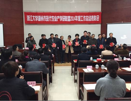 会议表彰了2014年度优秀产业联盟和先进个人。蔬菜产业联盟汪炳良教授、茶叶产业联盟陆文渊农艺师、畜禽产业联盟李肖梁研究员、粮油产业联盟沈建福研究员分别作了交流发言。