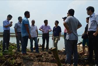 在三门县科技局副局长陈彩�、农业局副局长林后来等陪同下,袁康培一行与浙江省科技厅农村科技处叶祥发共同走访了三门县花桥镇和浦坝港镇水产养殖区。据统计,第9号台风“灿鸿”造成三门县水产养殖塘受损面积达2.3万亩,塘区内养殖的青蟹、小白虾外逃,低盐度水质造成塘内泥蚶等贝类死亡,损失产量达5570吨,损失达70%,产值1.6亿元。舒妙安副教授就灾后情况提出了及时有效的补救措施。三门县健跳镇鸟屿村早稻损失较严重,倒伏350亩,减产30%。特技特派员服务小组一行提出了改善水稻种植品种,优化土壤肥料施用技术及提升产品品牌等关键途径。