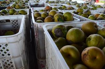 落果蜜梨分拣装箱 黄凌霞入蜜梨园灾后技术指导