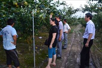 科技特派员服务小组在天台县科技局局长陈彩飞等陪同下,了解天台海丰蜜梨专业合作社因台风落果受灾情况:整园落果损失超60万斤,达总产量三分之一,园区内部分梨树叶片出现卷叶现象。黄凌霞副研究员入园指导合作社农民做好扶植倒伏树木、灾后保果等工作,启动可能出现的蜜梨病虫害疫情防治预案,争取把损失降到最低。