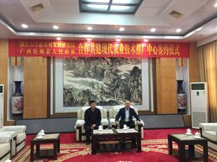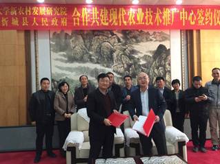 12月29日上午,广西壮族自治区忻城县政府会议室举行了新农村发展研究院和忻城县人民政府合作共建协议签约仪式,常务副院长张国平和县长李朝晖分别在共建忻城县现代农业技术推广中心框架协议上签字,明确了双方项目负责人、联络员和阶段目标,这标志着我校“沿边战略”科技服务又一重头戏徐徐拉开了序幕。