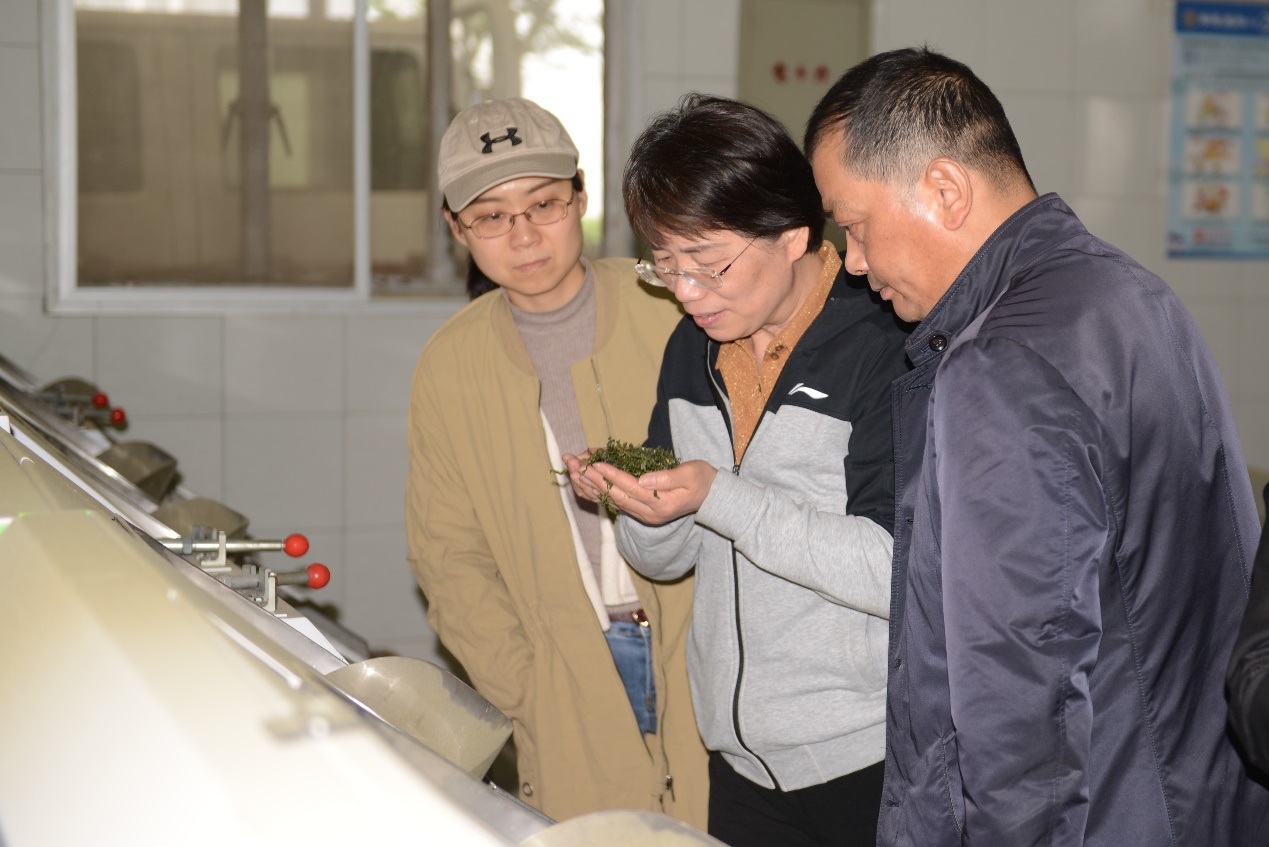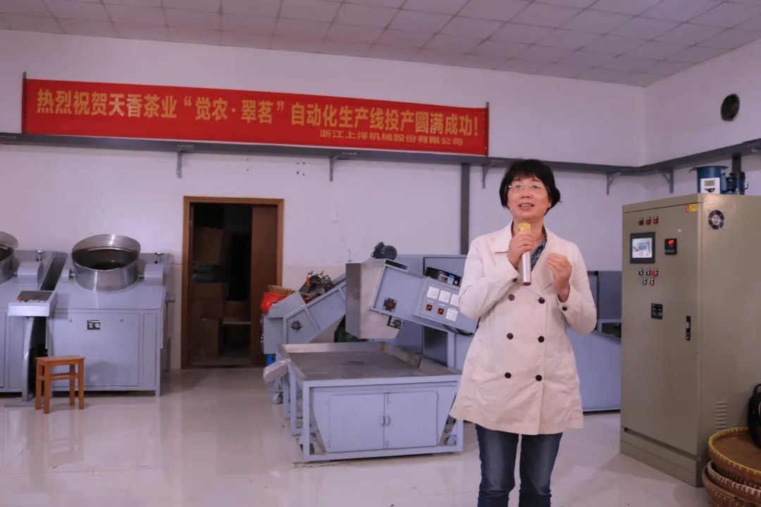 4月21日至22日,龚淑英教授带领团队赴浙江天香茶叶有限公司进行工艺比对试验,对新安装的机械设备进行调试,对生产线的物料平衡进行调节,对制得产品进行对比评价。22日上午,龚淑英教授出席了“觉农·翠茗”自动化生产线建成启用仪式,并对“觉农·翠茗”标准化工艺流程进行讲解。启用仪式结束后,她还对自动化生产线各个环节及工艺流程进行了详细讲述,并与各茶企负责人互动交流,对茶叶制作过程中的技术问题给予指导。