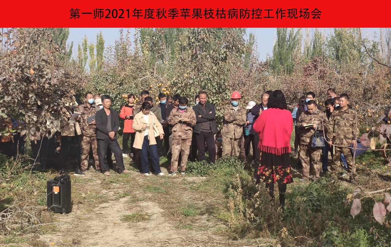 应新疆生产建设兵团第一师市党委农村工作领导小组办公室的邀请,10月27日,我院教师、塔里木大学科技处副处长(援疆)楼兵干研究员为新疆生产建设兵团第一师9团、10团等单位进行培训。她结合今年第一师市香梨、苹果、山楂、海棠、杜梨等果树病害发生特点,就苹果枝枯病发生传播规律、防控关键技术、秋季苹果枝枯病人工清园和化学药剂清园技术进行详细讲解、现场培训和示范。