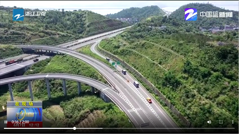 2021年6月7日浙江卫视《正午播报》播出了乐清湾大桥及接线工程路域山体岩石坡面人工重建植被的美丽景观。