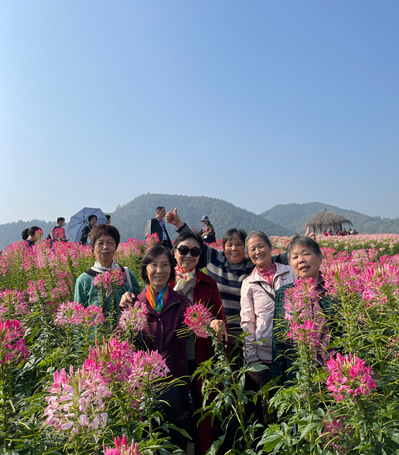 此次活动是新农院和试验站合署后退休职工的首次外出实践活动,参加活动的有经常见面的老职工,也有十几年没见但互相挂念的老熟人,久别重逢,大家有说不完的话、道不尽的情,在相互的问候中出发前往此次活动第一站,径山花海和小古城村。