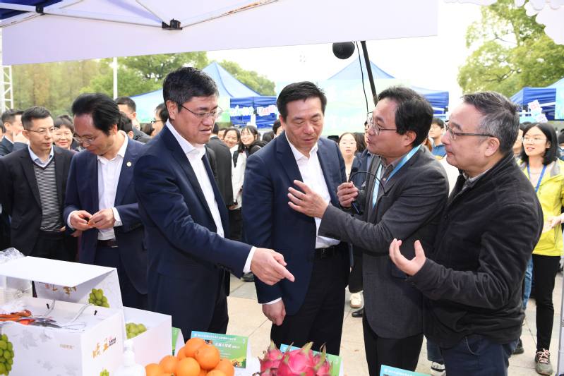 11月22日,由浙江大学新农村发展研究院和湖州市农业农村局主办、湖州市南太湖现代农业科技推广中心承办、浙江大学湖州市产业联盟示范基地协办的浙江大学湖州市现代农业产学研联盟农产品品鉴推介会在紫金港校区文化广场圆满举办。千余名浙大师生到场参与品鉴推介活动,见证“校地合作”推进乡村振兴、共同富裕的实际成效。
