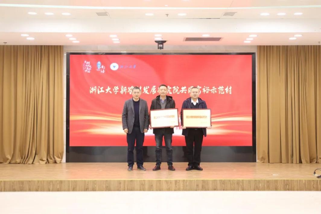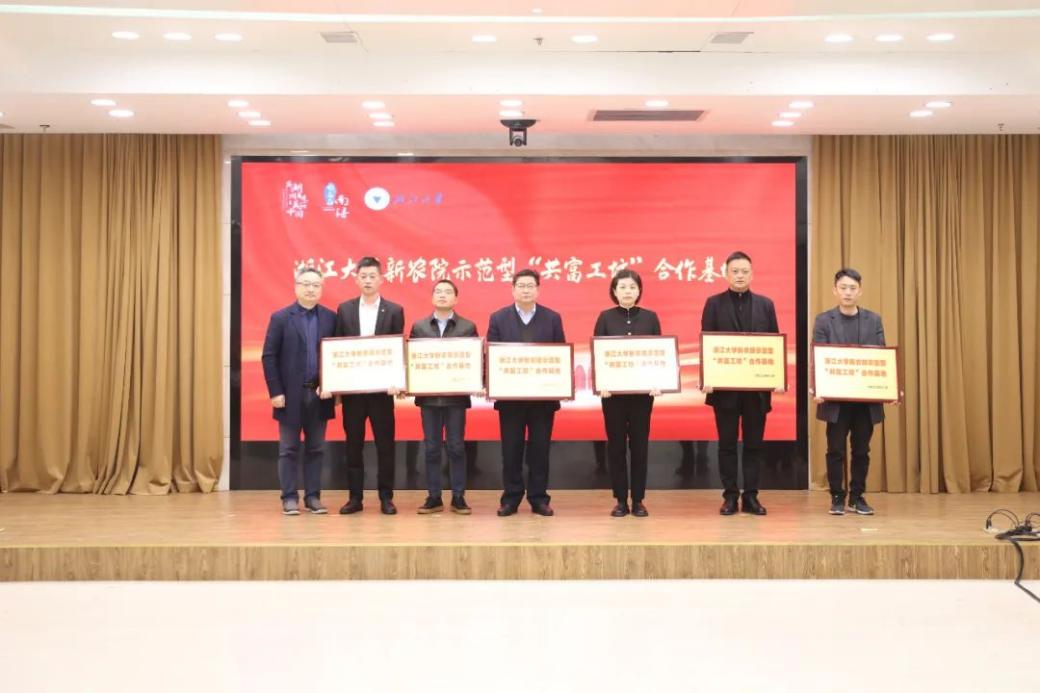 仪式上,校地双方签订了《“共建共富南浔”党建联建协议》,举行了共同富裕南浔专家咨询委员会成立及首席专家聘任仪式,以及浙江大学新农院示范型“共富工坊”合作基地和浙江大学新农院共同富裕示范村授牌仪式。