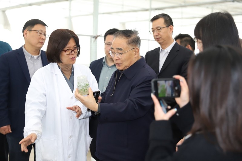 4月12日,由我院毛碧增研究员作为首席专家指导的浙江桐乡杭白菊科技小院迎来了人民英雄、国医大师张伯礼院士和国家标准化质量与创新联盟专家组。毛碧增老师在浙农杭白菊育苗中心,向张伯礼院士一行详细汇报了杭白菊健康种苗创制、繁育和标准化生产体系。当得知师生常年深入生产一线,持续为菊农提供优质种苗和传授标准生产技术,致力菊花的品质和产量提升,亩产值达1万余元时,张院士充分肯定了科技小院科技赋能产业、研究成果赋能共同富裕的使命担当,并称赞杭白菊是一朵名副其实的“致富花”。