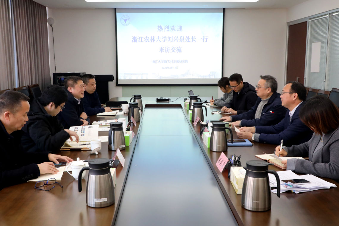 3月17日上午,浙江农林大学社会合作处刘兴泉处长一行4人到访新农院和试验站,党政班子成员王建军、王珂、张士良热情接待刘处长一行并座谈交流。