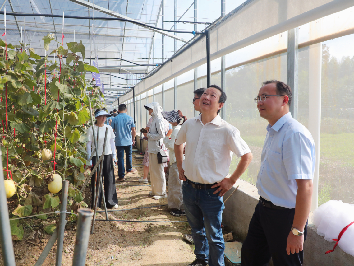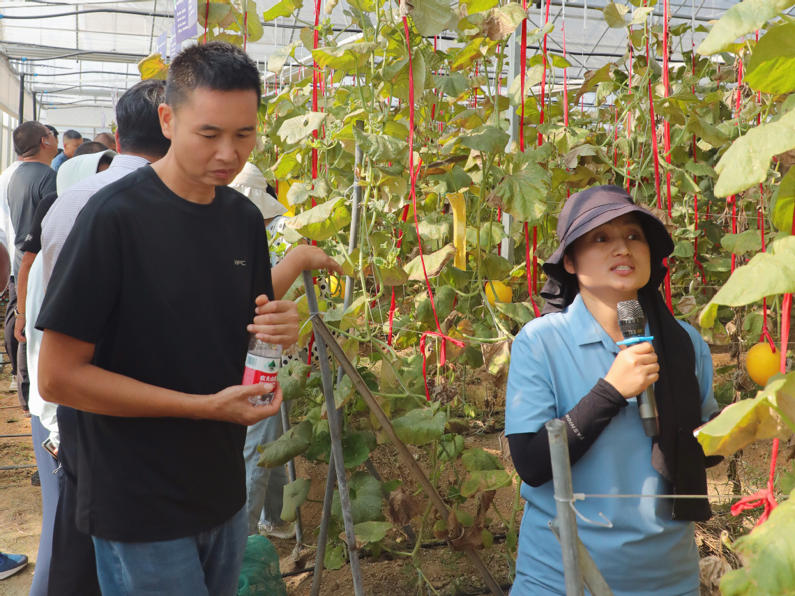 为展示适合长江中下游地区秋季栽培的甜瓜新优品种,展示高品质水肥一体化栽培技术成果,进一步推动浙江省甜瓜产业高质量发展,10月11日,浙江大学秋季甜瓜品种展示示范现场观摩与培训会在长兴农业试验基地成功举办。浙江大学新农村发展研究院和农业试验站党委副书记张士良、浙江大学新农村发展研究院副研究员叶红霞、浙江省农业技术推广中心胡美华、浙江省种子管理总站俞琦英、湖州市农业科学研究院沈卫新等领导专家出席会议。湖州市农业科学研究院、市各区县农技推广中心、生产经营主体等50余人参会。会议由浙江省西甜瓜良种育繁推科技创新平台首席专家、浙江大学新农村发展研究院汪炳良教授主持。