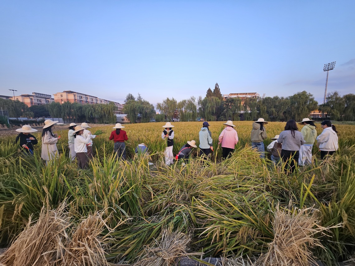 为了进一步感受现代农业与传统农业的直观区别,董老师带领学生学习并体验水稻的机械收割。从人工收割到智能农机的强烈对比,清晰展现了现代农业技术的高效便捷,深化了学生们对“科技赋能农业”的认知。