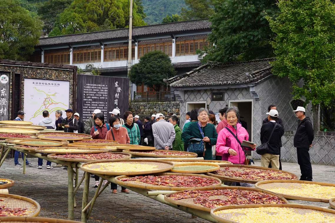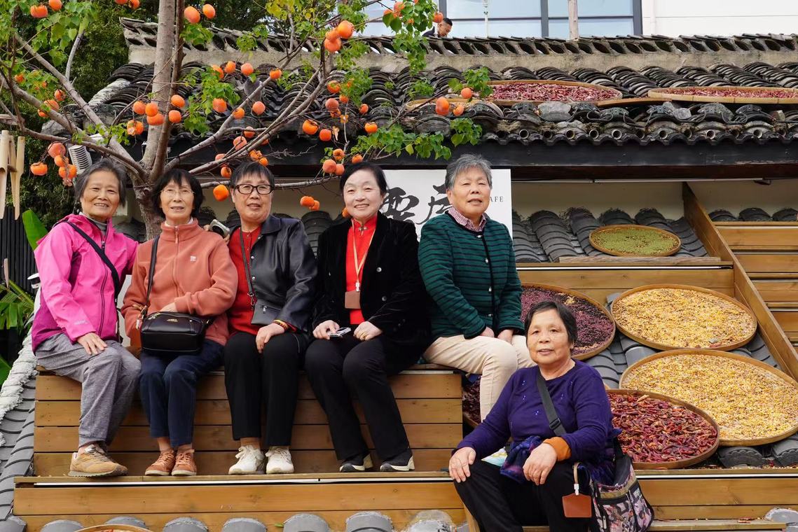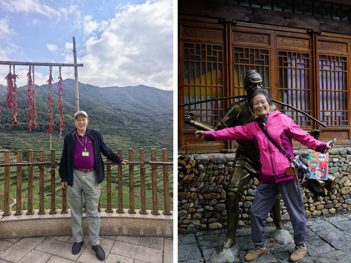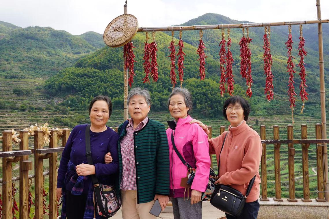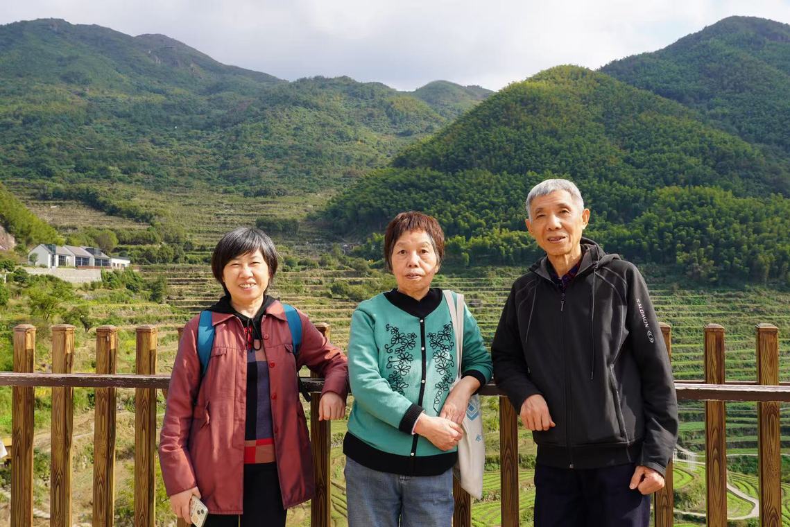 午后,大家前往上虞覆卮山。面对千年梯田的壮丽画卷、静谧淳朴的东澄古村以及诸多奇特的象形山石与清澈溪流,老同志们倍感心旷神怡。秋日的覆卮山层林尽染,梯田层层叠叠,青砖黛瓦的古村掩映在山林间,他们或驻足拍照留念,或结伴缓步登高,在秋日美景中放松身心。登山过程中,大家互相关照,彼此搀扶,深厚的情谊在青山绿水间默默流淌,欢声笑语回荡在山谷之中。老同志们纷纷表示,此次登高不仅锻炼了身体,陶冶了情操,更感受到了单位的关怀。