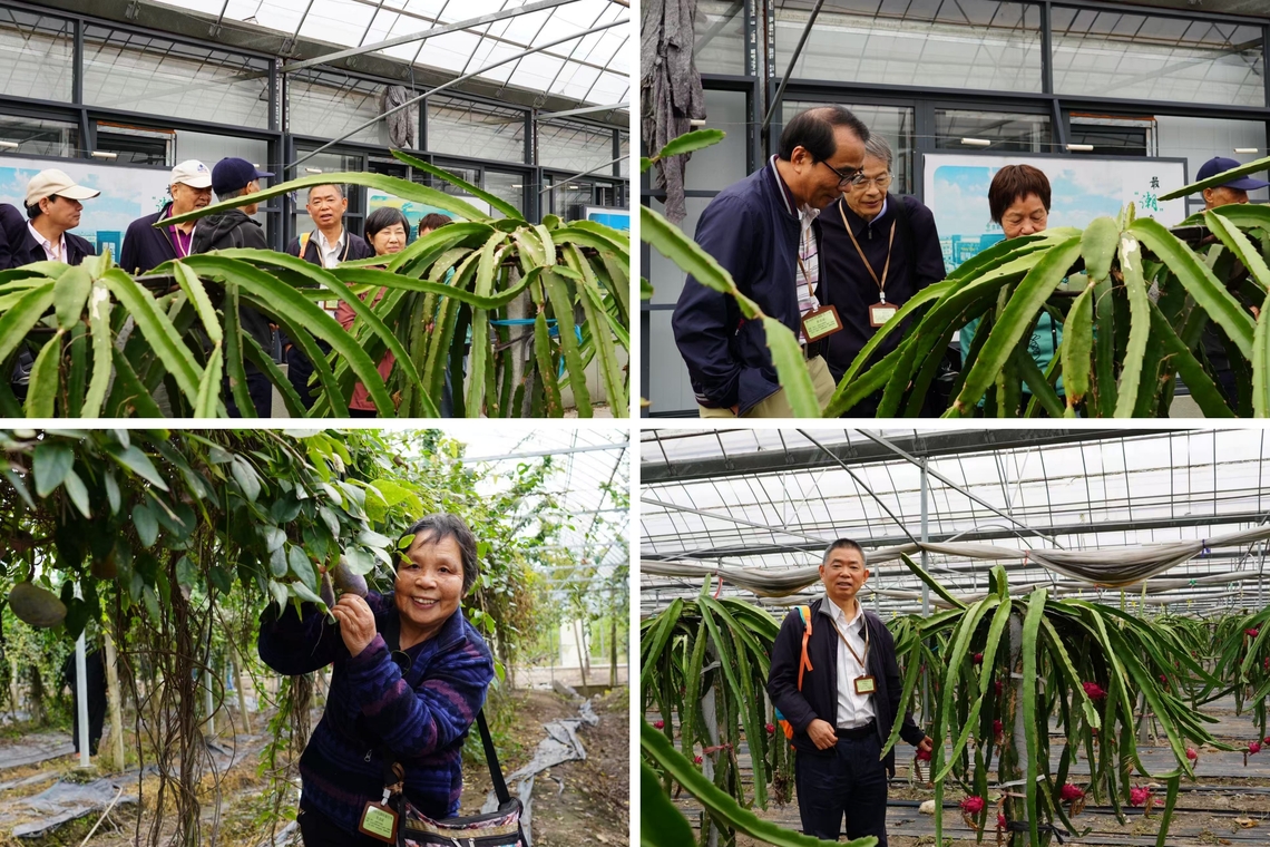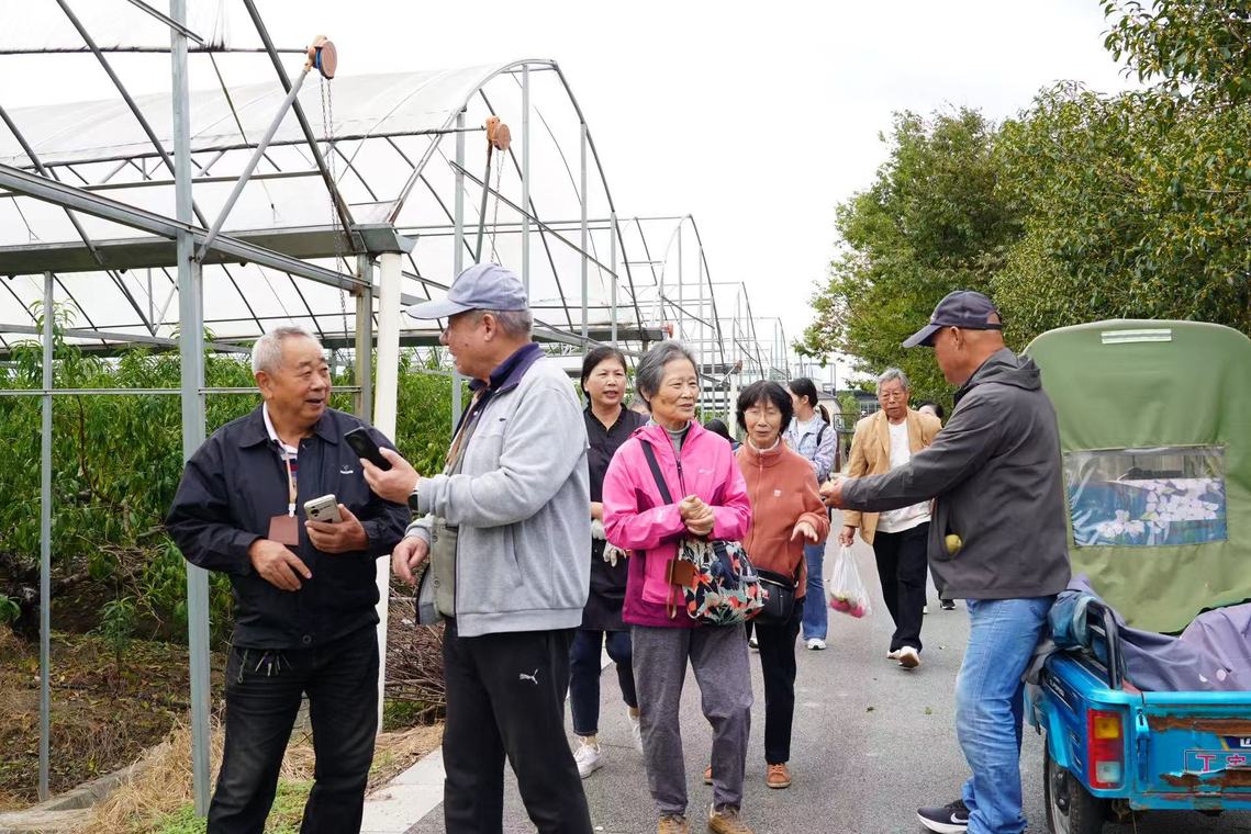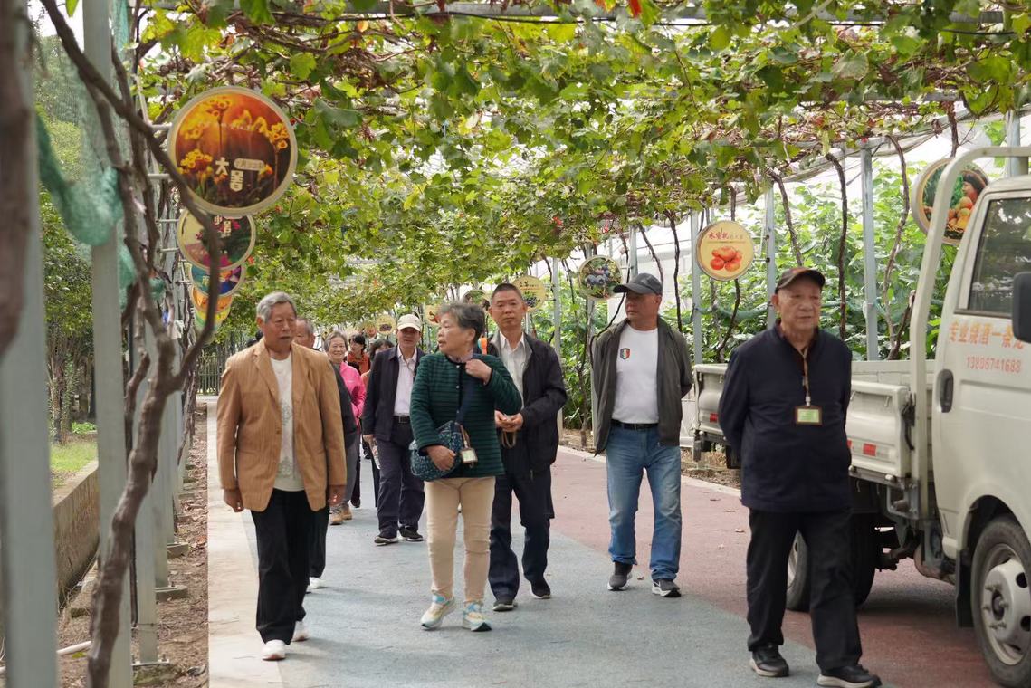 首站抵达被誉为“生态农业观光园”的上虞大通农场。这里集采摘、餐饮、观光、休闲和科研功能于一体,展现了现代生态农业的多元化发展与独特魅力。退休老师们兴致勃勃地漫步园中,观摩先进的农业种植模式,体验田园风光,对现代农业科技的创新与应用赞叹不已。他们结合自身多年的农业科技创新与推广工作经历,不时交流看法,言语中充满了对农业领域取得新进展、新成就的由衷欣喜,饱含着对本单位未来发展的殷切期望。午餐时,老同志们围坐一起,详细询问新农院和试验站近期的建设发展、人才培养情况。即便离开工作岗位,但他们对农业科研事业的热忱、对单位发展的牵挂从未改变。